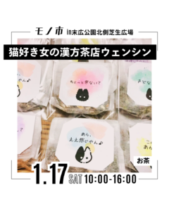 猫好き女の漢方茶店ウェンシン 2026 1/06 モノ市出展者紹介 お茶 日常に寄り添ったオリジナルブレンド漢方茶葉と薬膳菓子の販売です モノ市出展者紹介 お茶 If you like this article, please Follow ! Follow @mono_ichi_mono Follow Me Let's share this post ! Copied the URL ! Copied the URL ! Journey Coffee 壺焼き芋 la pusuta 関連記事 【開催日のお知らせ】2026年開催予定日を発表しました 【出展者発表】モノ市1月17日(土) 【開催日のお知らせ】2026年1月17日(土)開催 黒猫堂 ちいさなおうち amuur 編み物のお店~むぎ~ ju_iffy