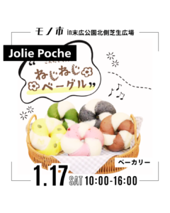 Jolie Poche 2026 1/06 モノ市出展者紹介 ベーカリー こんにゃくパウダーを練り混んだベーグルは柔らかくて、もちもち新食感! モノ市出展者紹介 ベーカリー If you like this article, please Follow ! Follow @mono_ichi_mono Follow Me Let's share this post ! Copied the URL ! Copied the URL ! メゾンフルリール オールドローズ 関連記事 【開催日のお知らせ】2026年開催予定日を発表しました 【出展者発表】モノ市1月17日(土) 【開催日のお知らせ】2026年1月17日(土)開催 黒猫堂 ちいさなおうち amuur 編み物のお店~むぎ~ ju_iffy